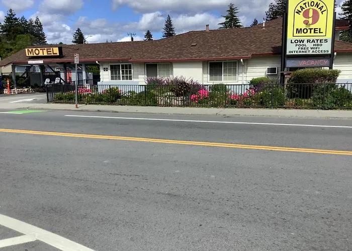 National 9 Motel is a convenient option located off Highway One, just a few kilometers from Santa Cruz Beach Boardwalk. This 2-star motel features an outdoor pool and offers spacious rooms with essential amenities. It is an ideal spot for travelers looking to enjoy both the beach and nature, as it is also close to Natural Bridges State Park.